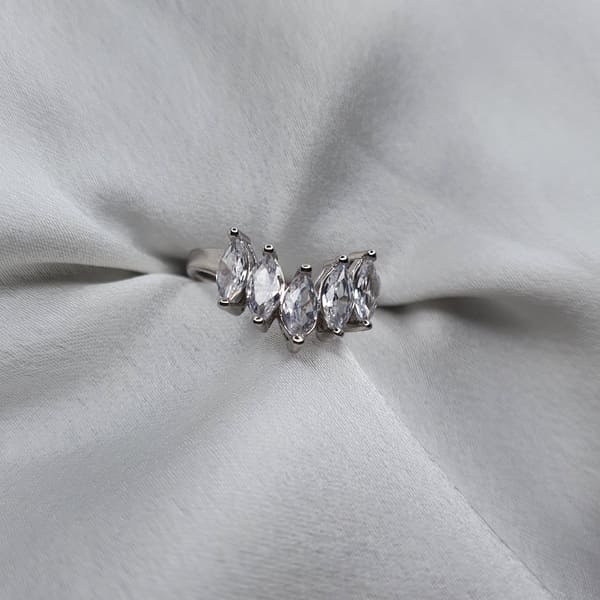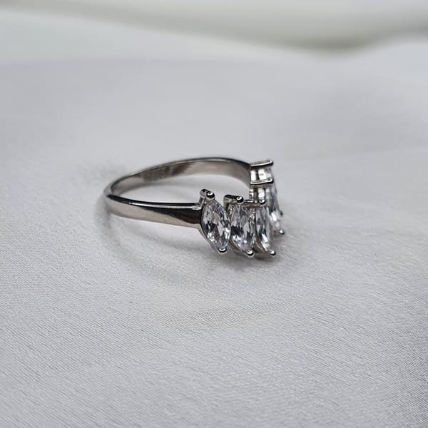 טבעת כסף בעיצוב וי טיפות משובצת זרקון