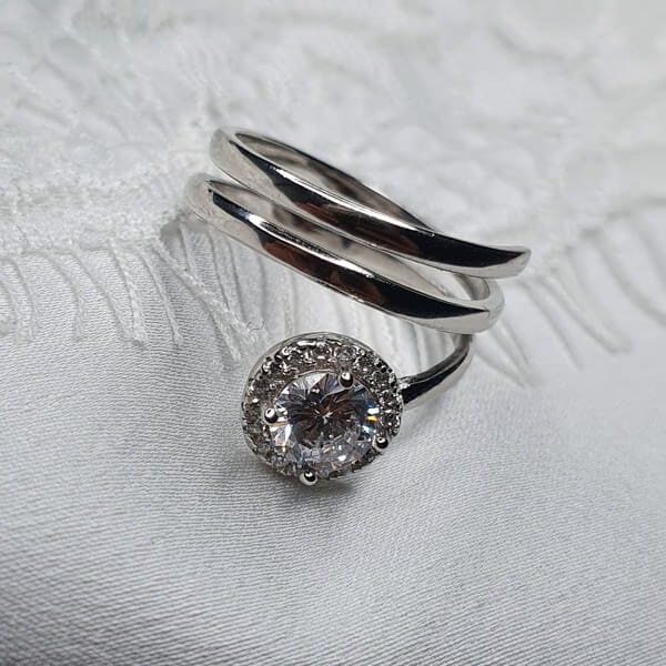 טבעת כסף ספירלה 3 שורות סוליטר משובצת אבני זרקון