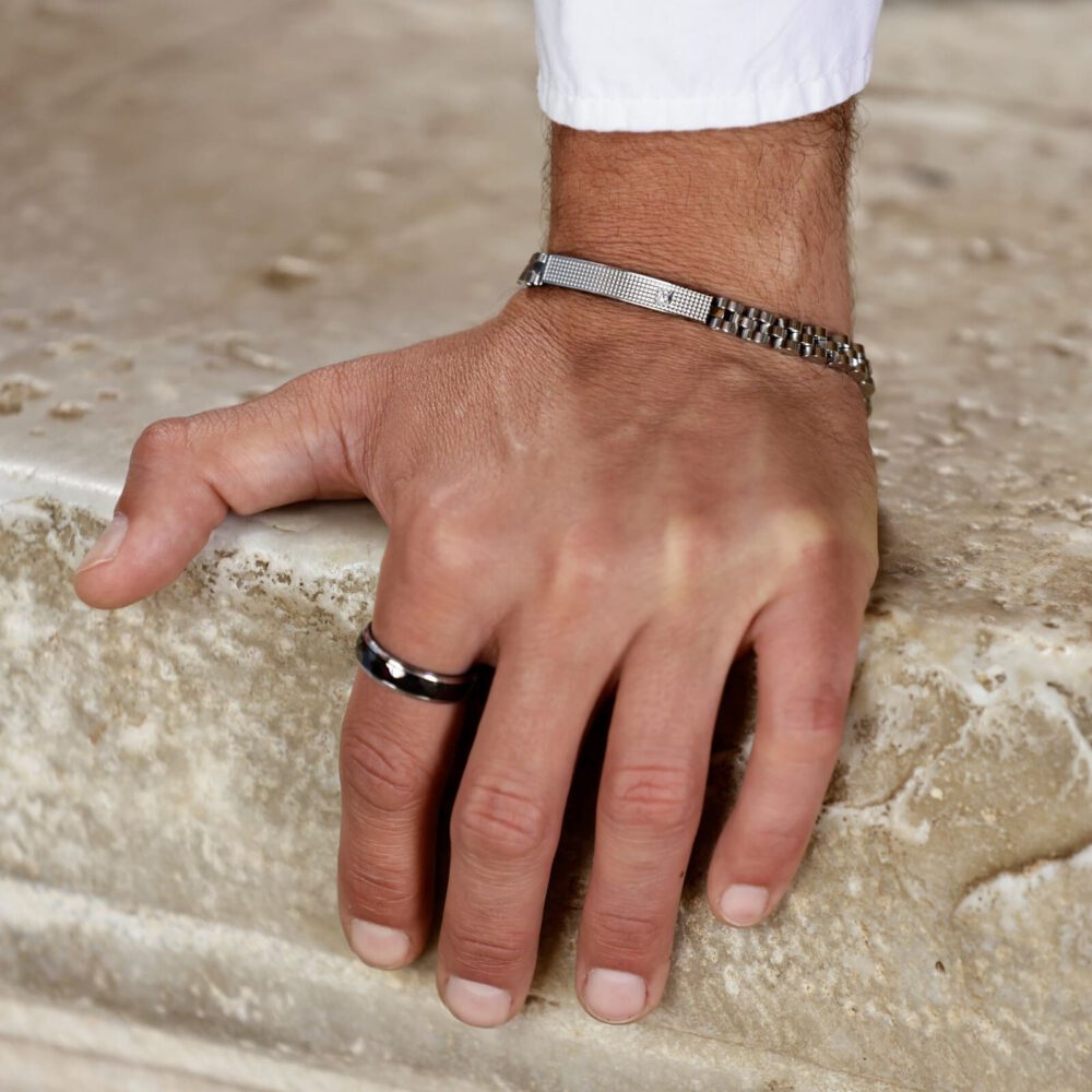 צמיד לגבר עשוי פלדת אל חלד כסוף .