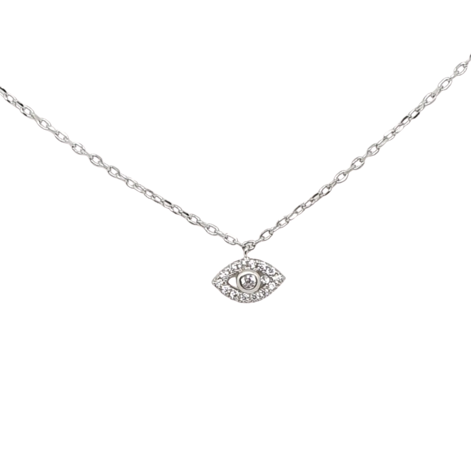 השרשרת מעוצבת עם תליון בצורת עין משובצת באבני זרקון.